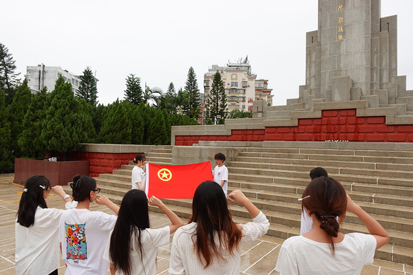 在陈毅元帅题词“先烈雄风永镇海疆”的烈士纪念碑前,学生们肃立默哀,通过敬献鲜花寄托追思。“勤奋学习,积极工作,吃苦在前,享受在后,为共产主义事业而奋斗。”随后,在领誓人许凌峥的带领下,同学们面对团旗庄严宣誓,句句铿锵誓言,彰显新时代青年的使命担当。