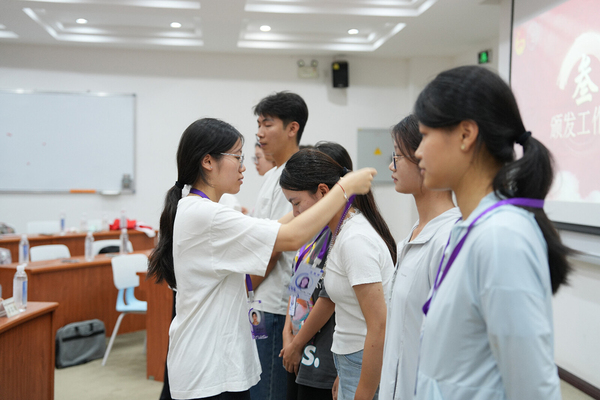 大会的第三项议程是颁发工作证,主席团与各部门负责人分别为负责人和新成员们颁发工作证。一张工作证不仅是团务中心成员身份的象征,更是荣誉与责任的见证。当成员们佩戴上工作证的那一刻,他们正式成为第十六届团务中心的一员,同时也肩负起了一份沉甸甸的使命,开启了他们在团务工作中的新征程。