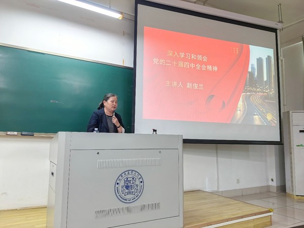 11月19日下午,建筑学院在主5#207会议室举办学习贯彻党的二十届四中全会精神宣讲报告会。报告会由建筑学院党总支书记苏丽华主持,马克思主义学院赵俊兰教授应邀作专题宣讲,建筑学院全体教师参加学习。