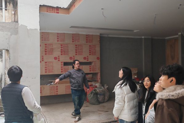 在这些“微更新”实践中,同学们现场学习如何在保留原有建筑风貌的基础上,植入当代生活功能,营造新旧对话的空间体验。调研尾声,团队专程拜访了当地设计团队“后生设计”。在负责人林荣发的带领下,师生们走访了正在施工中的老建筑改造项目。林荣发老师结合现场实例,分享了如何通过庭院与屋顶空间的再组织,在有限尺度内创造良好使用体验。直面真实问题的创作过程,使同学们深受启发,现场交流气氛热烈。