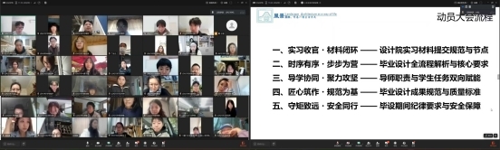 动员大会后,毕业设计分小组开题工作灵活推进,结合师生实际情况采用线上线下相结合的模式,多元选题为学生搭建起广阔的实践平台。
