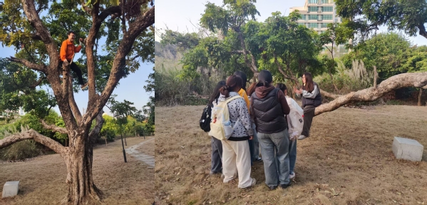 活动过程严格遵守安全纪律,教师全程跟班,确保学生在安全范围内活动。同时,课程始终强调尊重自然的环保理念:不破坏植物、不捕捉动物,只收集自然脱落的素材,在观察中培养生态责任意识。自然教育与疗愈微专业将持续开展系列户外实践活动,构建理论+观察疗愈+反思的立体化教学模式,助力学生在自然中完成知识建构与身心滋养的双重成长。