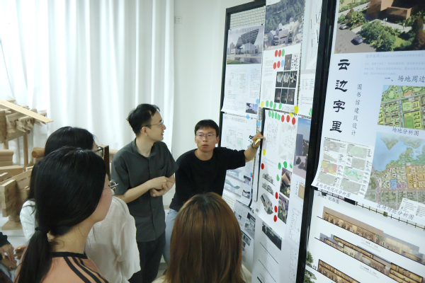 此次互评不仅增强了评图现场的互动性,也为优秀作品的遴选提供了重要参考。通过贴纸互评与现场讨论,评图进一步从单向点评转向多向交流,成为一个比较、反馈、互学互鉴的学习过程。评图结束后,部分优秀作品拟经遴选后进入校图书馆展出,推动课堂成果从评图现场走向更广阔的校园公共空间,也让围绕社区图书馆的设计思考获得更广泛的展示与传播。
